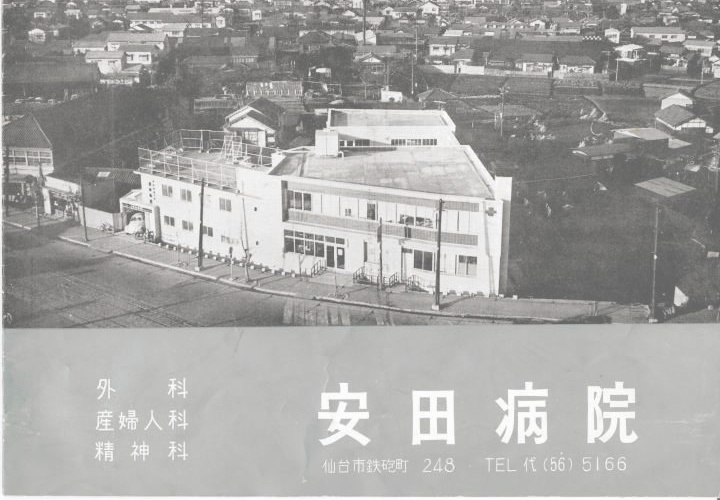 昭和20年7月10日の仙台空襲で国分町の病院が焼失し、現在地の仙台市鉄砲町(現仙台市宮城野区小田原)に移転しました。昭和25年に財団法人安田博愛会を設立し、生活困窮者や妊産婦などへの支援を行いました。その当時の診療科は、外科・産科・婦人科で23床の病院でした。昭和31年、診療科に神経科・精神科を追加し、一般病床40床、精神病床40床の病院となりました。昭和39年に病棟からに出火し、一度避難した患者さんが火の中に戻り2名の尊い命が失われました。翌年、一般病床45床、精神病床101床に改築しました。この頃、急速なモータリゼーションによる交通事故が頻発し、行政による救急医療体制がまだ出来上がっていない中、渋谷外科病院、登米外科病院などと共に仙台市内の救急医療を担っていました。昭和48年の院長交代を機に、診療科を外科、神経科、精神科とし、産婦人科の標榜を下しました。院長となった安田恒人は、開放的処遇で病院を運営し、当時は珍しかった開放病棟で運営していました。しかし、病院の前面が国道で車の往来も激しく、外出中の患者さんが交通事故に遭うこともあり、止む無く閉鎖病棟となりました。